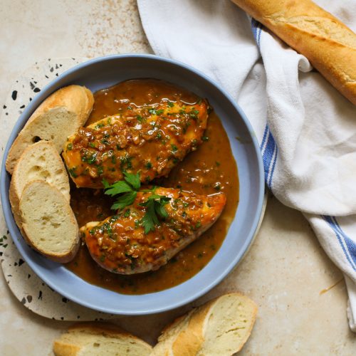 - Garnish with parsley and serve with crusty bread to soak up the sauce.