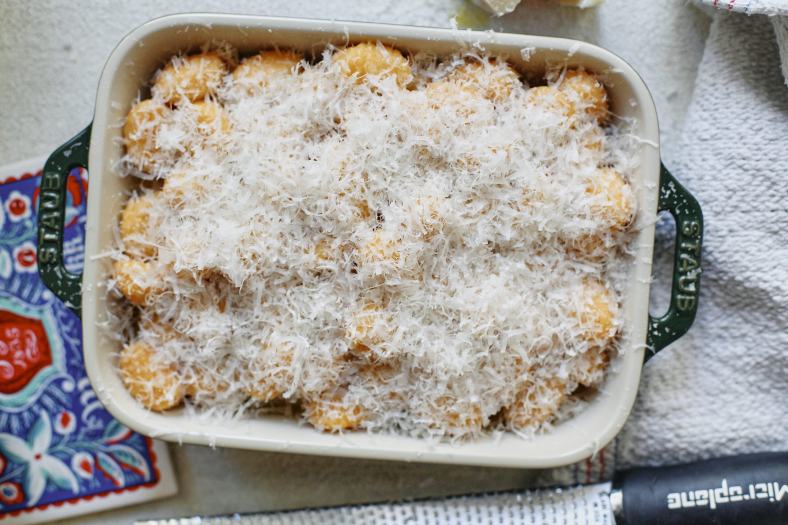 • Easy to assemble: A quick stovetop base, a layer of gnocchi, a sprinkle of parmesan, and straight into the oven.