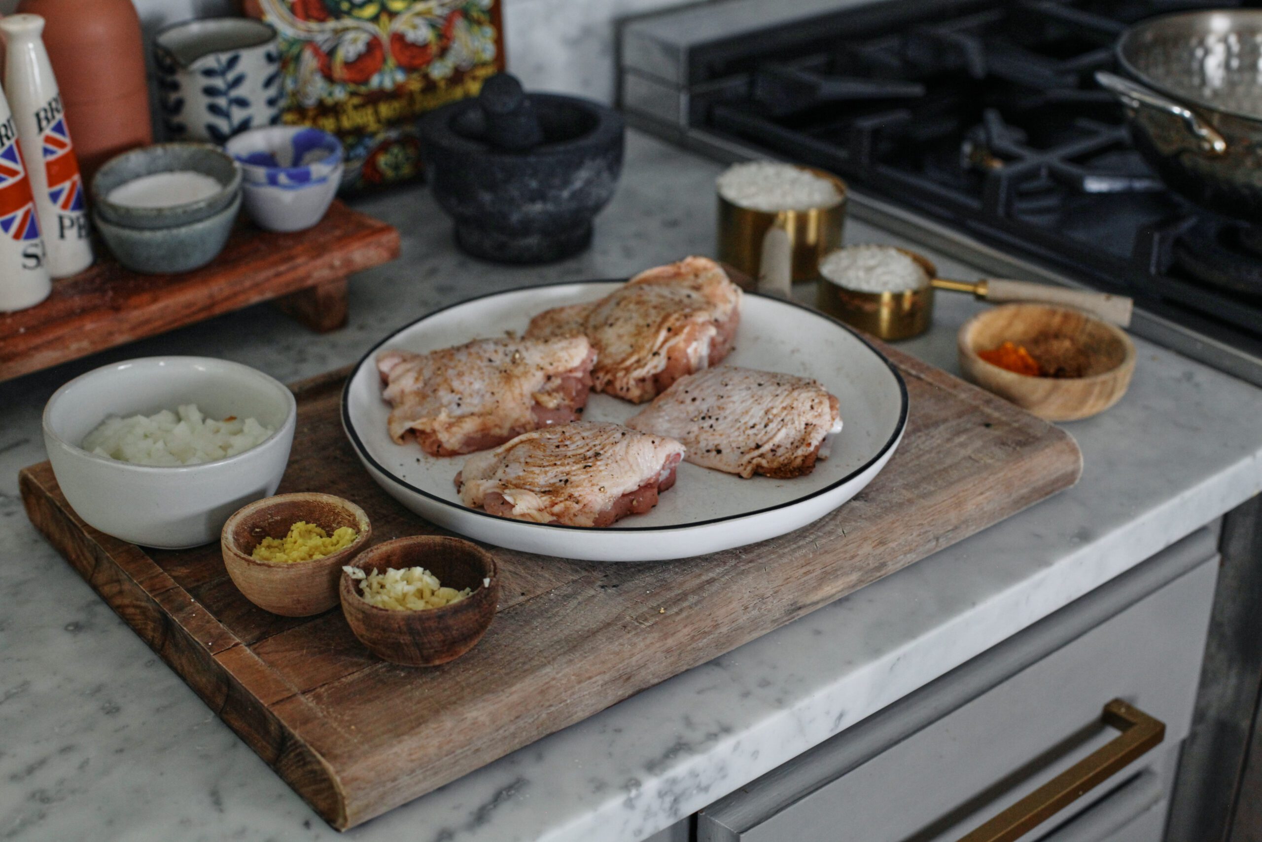 Chicken thighs: Bone-in, skin-on thighs are my top pick for maximum flavour and that crispy golden skin as the fat renders. Boneless thighs work too, and if you’d rather use skinless thighs or chicken breasts, check the substitutions section below for tips.